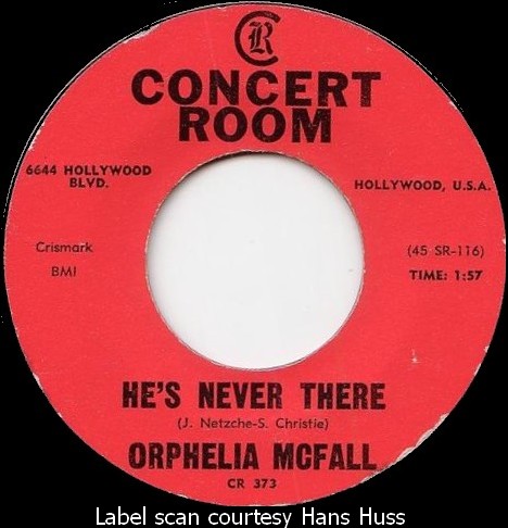 Orphelia must be the same girl who had an earlier release on H.B. Barnum's label, (Little Star 110). The label scan 'borrowed' from an auction on eBay, my bid being below the 100 plus dollars selling price, is shown. The sound clip that accompanied the auction, as with many Little Star releases, 'sounds' as if Jack Nitzsche was at the session.