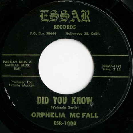 The playing of Orphelia McFall's "He's Never There" (Saturn 403) enlisted (for those matrix and label spotters, like me, who enjoy this kinda thing) some great posts from Hans 'Hasse' Huss and Stephen C. Propes. The messages can be 'searched' on Spectropop but with my acquisition of the Essar 45 and purloining of the Little Star label scan I decided to list the main points here.