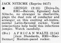 I thought it may be off interest to see the German picture cover and the Cashbox review kindly supplied by Harry Young. Interestingly the review shows 'Gringo' as the intended a-side but by the time the 45 had crossed the Atlantic 'African Waltz' was the intended hit.